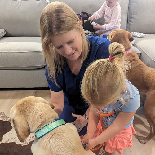 Dr. Shelby Glenboski, affectionately known as "Dr. G," discovered her passion for veterinary medicine during her early years, accompanying her equine vet on farm calls. These experiences are what first ignited her interest in mobile practice. After completing her undergraduate studies at FSU and earning a doctorate from the Auburn College of Veterinary Medicine, Dr. G and her husband, Josh, initially moved to Wisconsin, where she made the choice to transition from large to companion animal medicine.